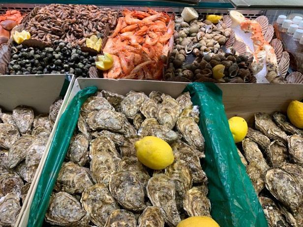 We went there on a Sunday and the place was naturally packed. We managed to squeeze at a little table at Maison Rousseau and had a lunch to remember . After jointly killing a dozen oysters, I had the Saint Jacques with a chorizo sauce and my husband had the most delicious soup de poisson ever. All washed up with a crisp Chardonnay. Heaven.