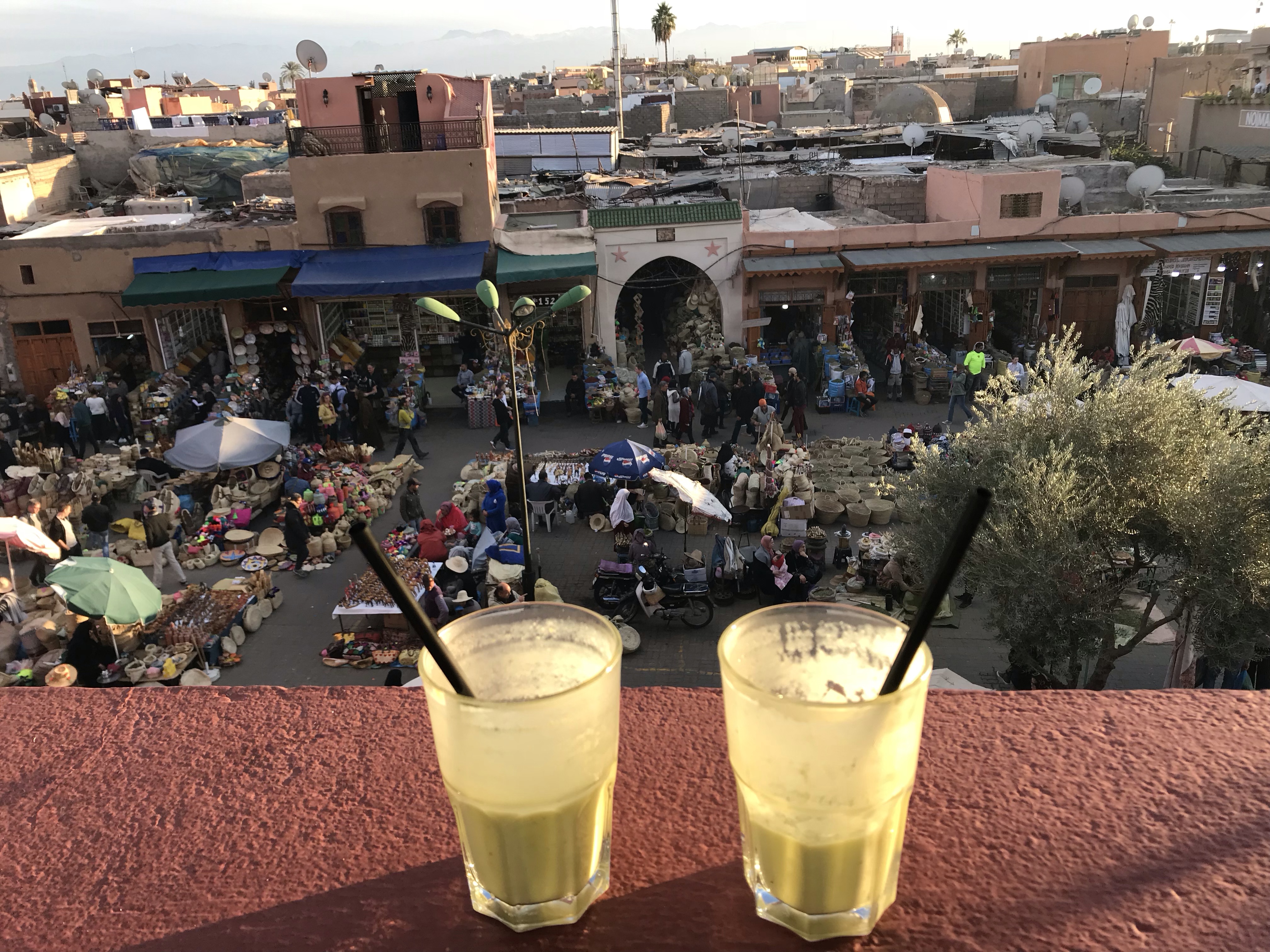 Just a stone’s throw away, there are a couple of rooftop restaurants to sit back and relax. Nomad is famous for its Mediterranean influenced Moroccan specialities like herb infused green couscous and fried calamari from Agadir. However we were not too hungry, so we saved Nomad for dinner and went to the Cafe des Epices across the square for fresh salads and refreshing juices. One additional benefit was the view, we spent hours watching the Atlas mountains in the horizon while sipping our cold mocktails.