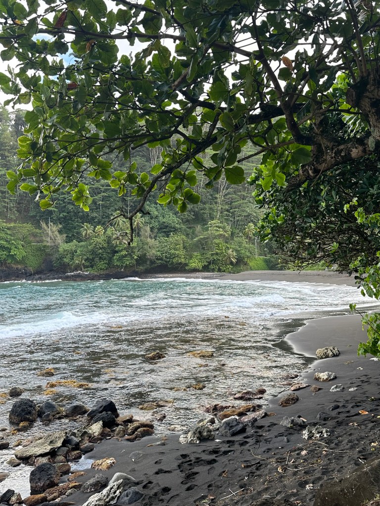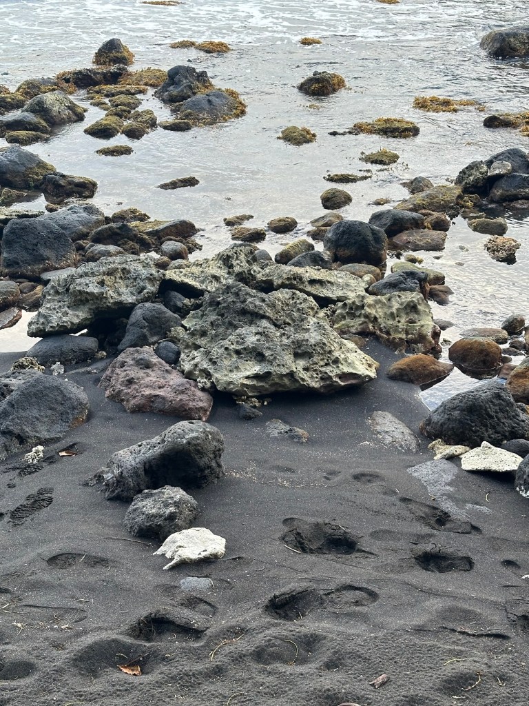 Here, the mountains get closer to the ocean, the plains disappear and the nature becomes more wild. The coral reef that protects the south side has eroded into black sand where local kids learn to surf.