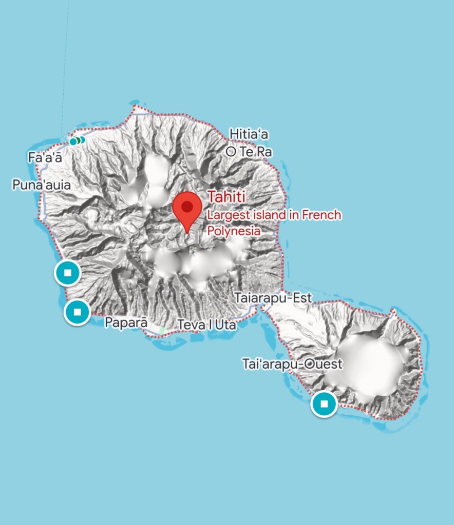 Tahiti, the principle island of French Polynesia is the largest of these islands, and the most crowded. It’s in the Society Islands archipelago. Shaped like a figure-8, it’s divided into Tahiti Nui (the larger, western section) and Tahiti Iti (the eastern peninsula).