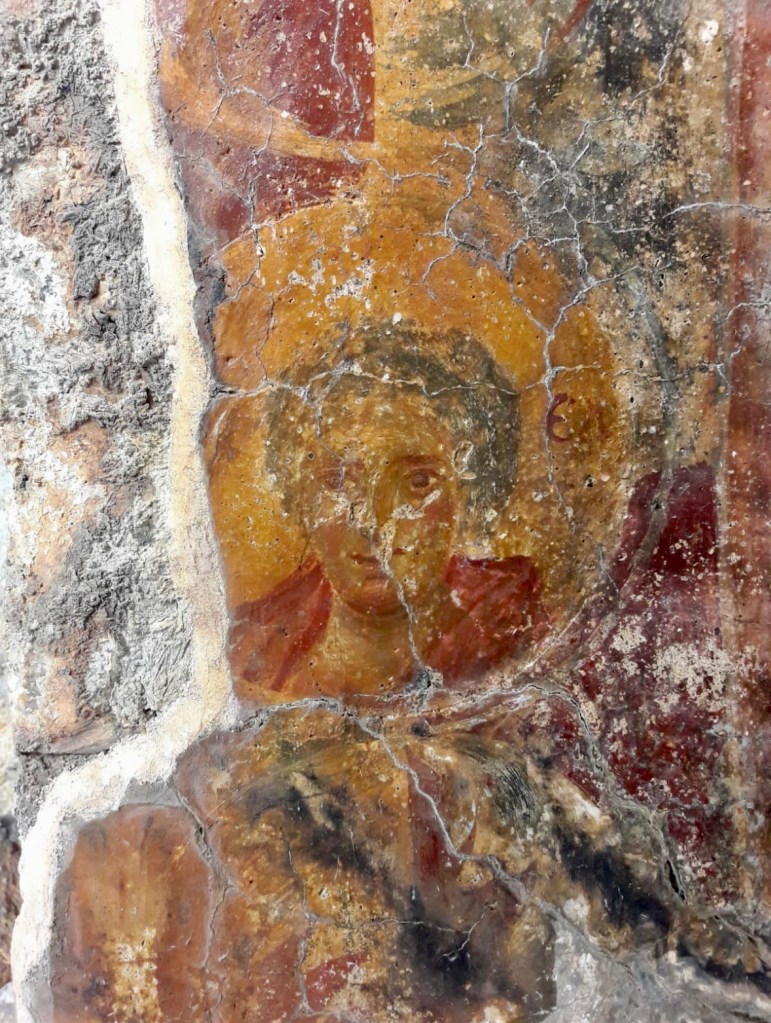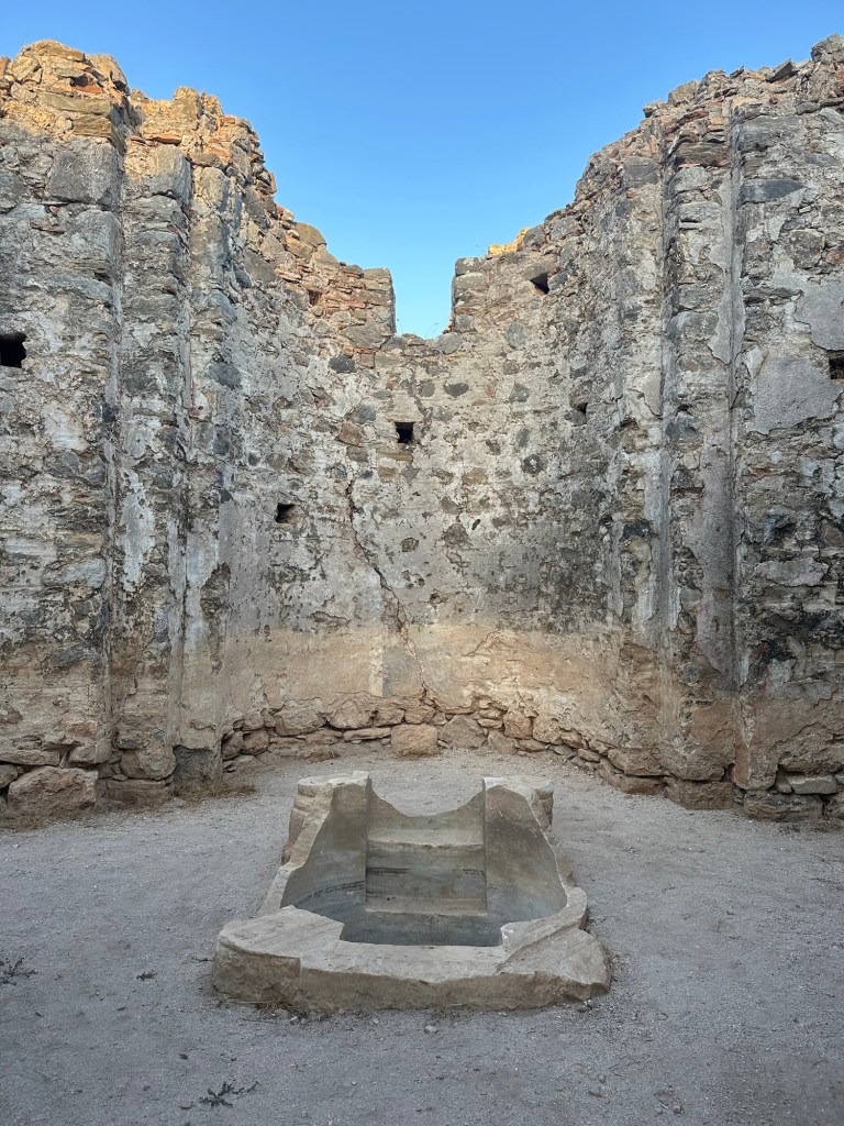 Among the ruins we recognized the outlines of a harbour, several churches, a bath, and even a baptistery. Mosaics have surfaced, and faint wall paintings too — some lifted away for restoration, others still open to the elements.